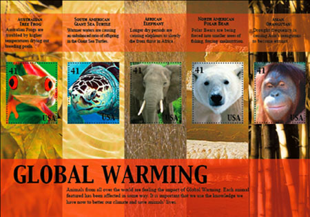 These stamps were made for a class during college. The assignment was to create a series of stamps about a cause that we believed in. For this, I chose the global climate change and the animals that are being affected.